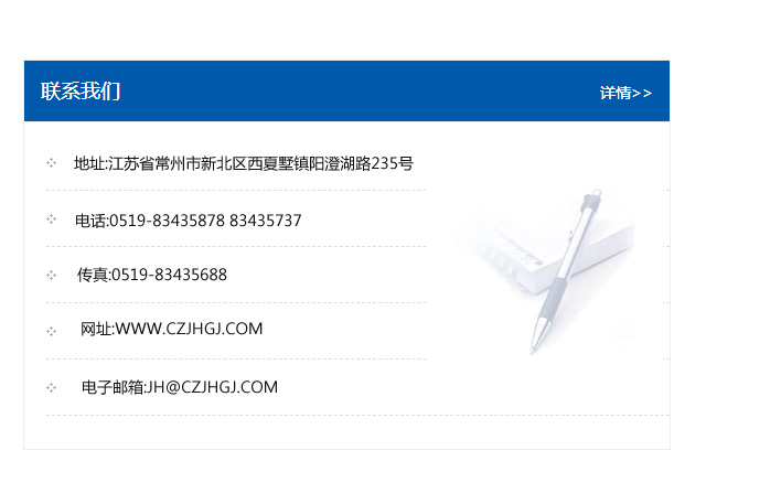 地址:常州市新北區友邦商務大廈1幢16、17層  電話:0519-85101652  傳真:0519-85112595  郵編:213022  網址:www.cz-jiayue_cn.gdskeli.com  郵箱:xiajifengaa@163.com